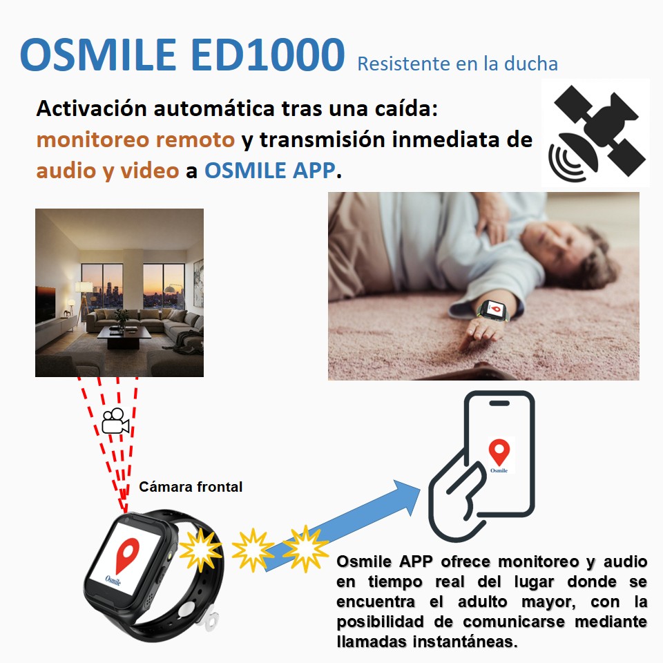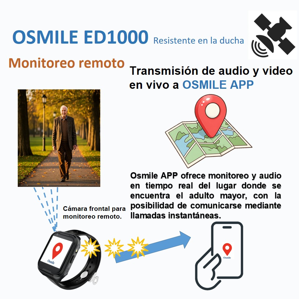 El Osmile ED1000 es un dispositivo de asistencia para la búsqueda y el cuidado de personas; la seguridad del adulto mayor es responsabilidad primordial de sus familiares. El Osmile ED1000 requiere carga eléctrica y señal de red 4G para funcionar. El olvido de la carga, la falta de cobertura 4G/5G o la falta de saldo/pago de la tarjeta SIM pueden impedir que funciones como las llamadas de emergencia, notificaciones de caída, alertas de inactividad y localización operen correctamente. Osmile no tiene control sobre estos factores de riesgo externos y, por lo tanto, no asume responsabilidad legal por la pérdida o seguridad de los usuarios que porten el dispositivo.