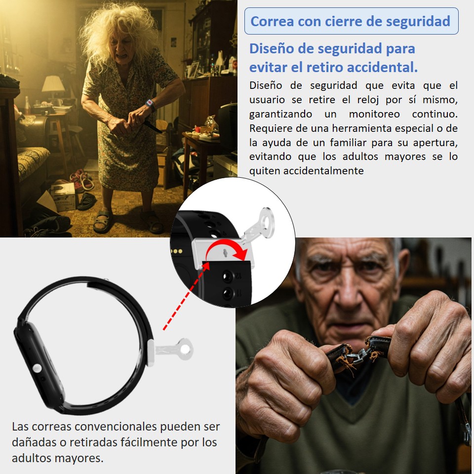 Diseño especial con cierre de seguridad que requiere una herramienta específica para ser retirado. Esto evita que el usuario se quite el dispositivo de forma accidental o involuntaria, asegurando el monitoreo y la localización constante.
