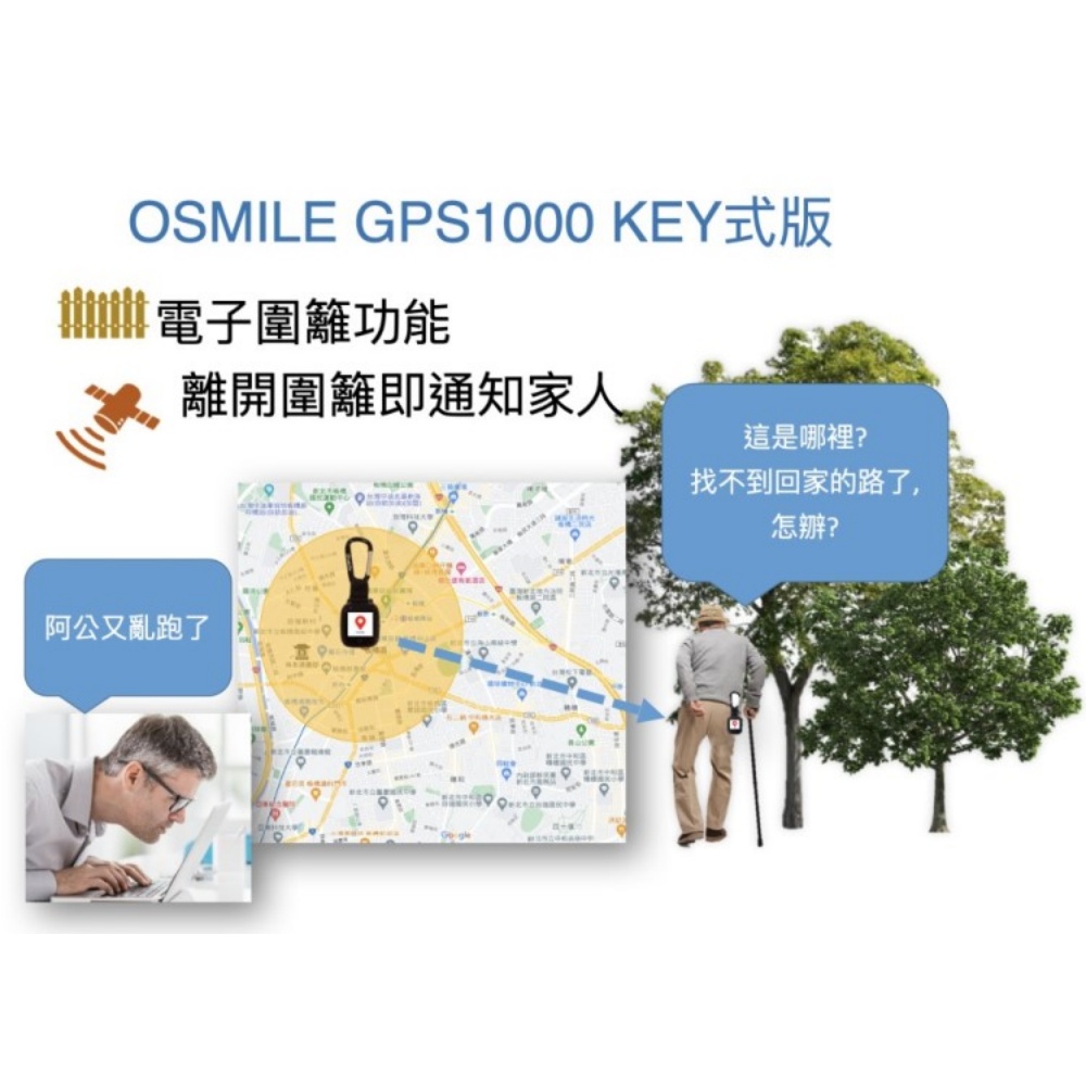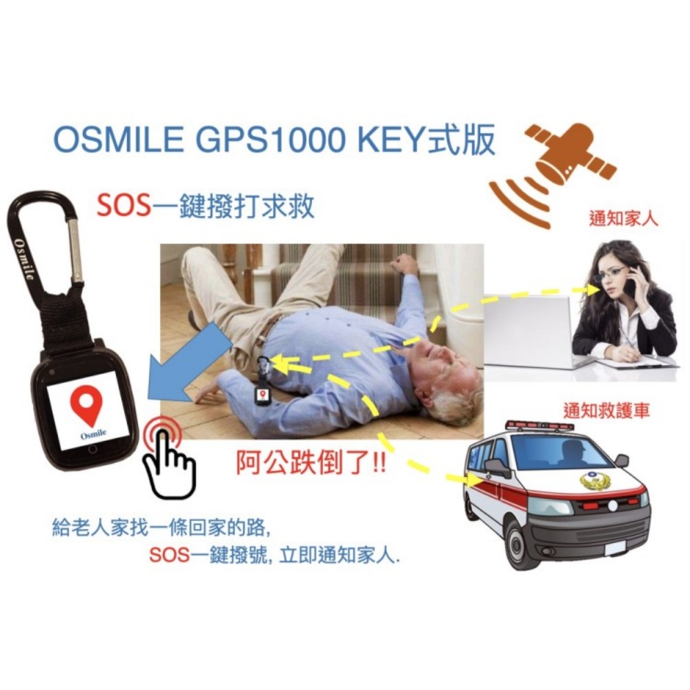 Osmile GPS1000 失智症 獨居老人 跌倒偵測 SOS 緊急救援 GPS定位 視訊通話 鑰匙圈手錶